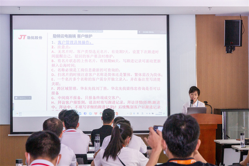 销售精英姚依春作为劲拓资深业务员,从自身角度为大家分享了一些成功客户案例经验以及劲拓在公司规模、研发能力、产品多元化、创新能力等方面的市场竞争优势。